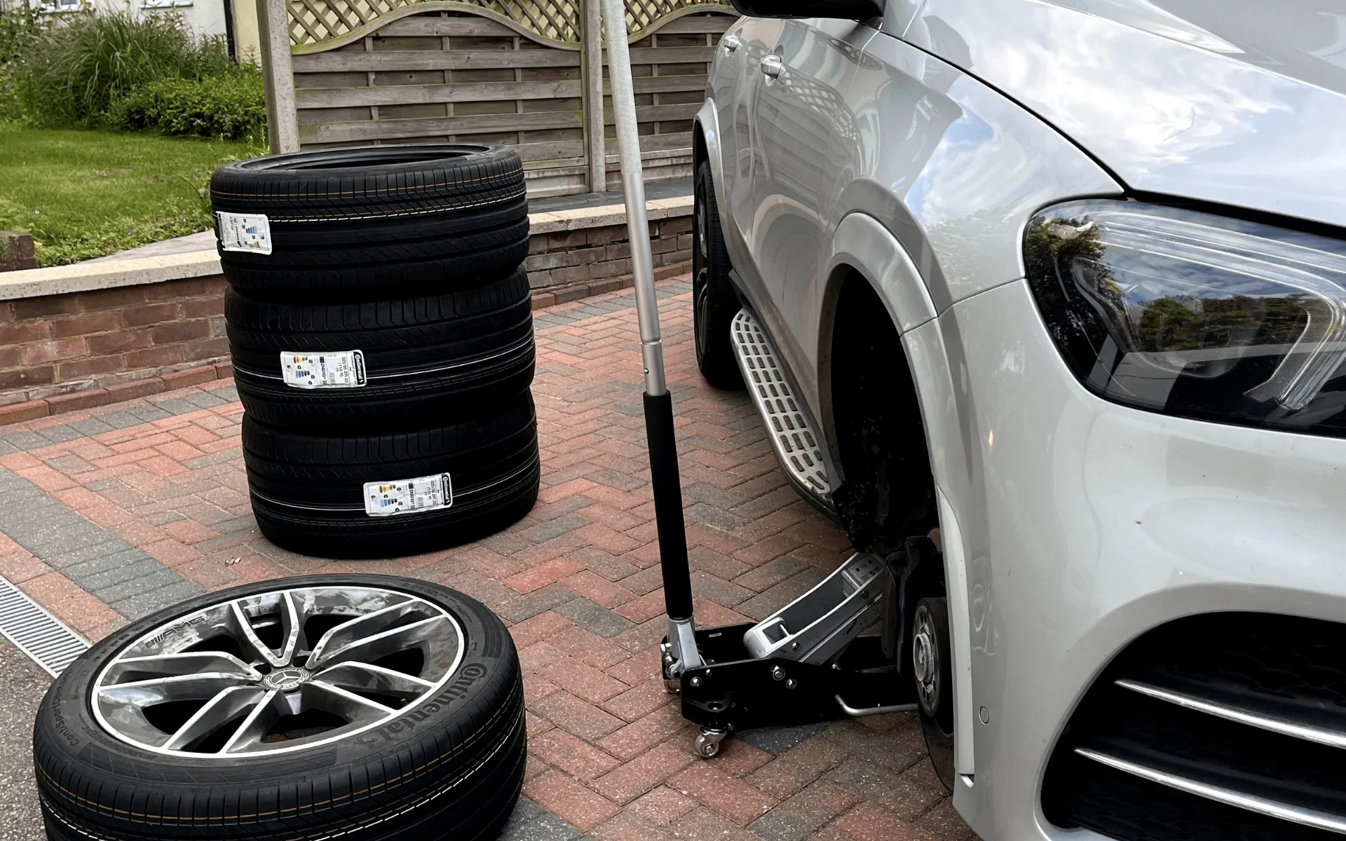 Less than you think. If there is enough room for you to open the car door, there is usually enough room for us to work. We can fit tyres in office car parks, driveways, or even safely at the roadside.